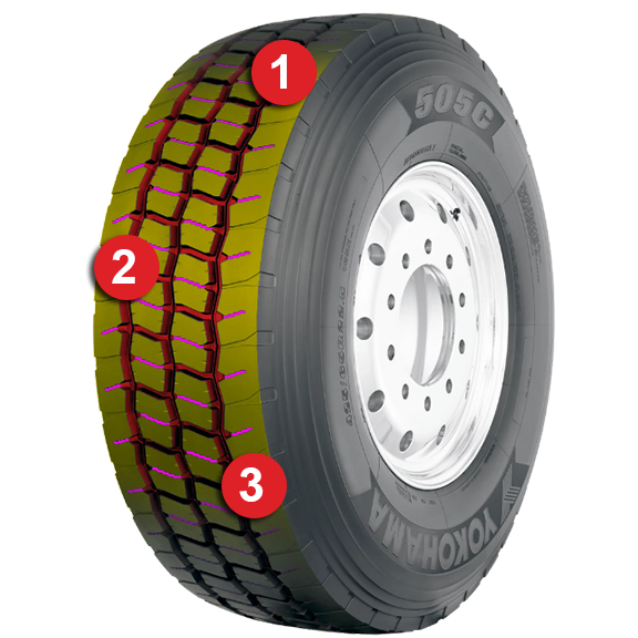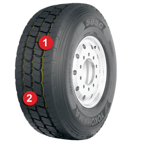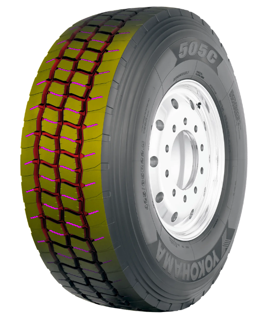 The all-new Yokohama 505C is a long-lasting, all-position tire engineered specifically for on/off-highway fleets. Its extra-wide tread efficiently distributes contact pressure across the entire footprint to provide longer wear and traction so great it carries the severe snow service designation.