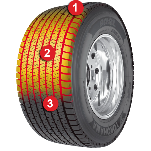 The Yokohama 902L UWB features innovative tread design that provides maximum traction and even weight distribution for stable tread wear. Its enhanced rubber compound and casing design decreases rolling resistance and increases retreadability—which lower your costs.