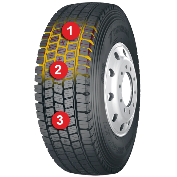 The SY767 is designed to provide exceptional traction capabilities throughout all four seasons. Featuring a multi-season rubber compound and optimized tread pattern, it overcomes wet, muddy and snowy conditions while providing long-lasting tread life. With the SY767, you not only get great all-weather grip, you get great mileage too.